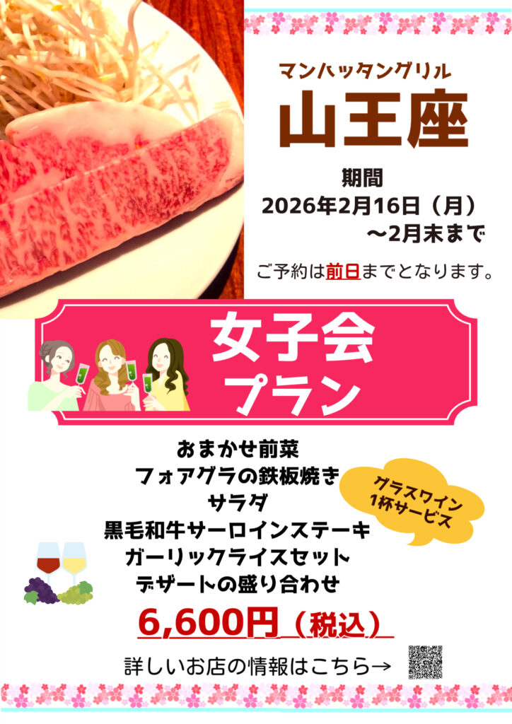 【山王座】2月限定女子会コース開始(サービス付き!)